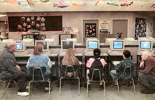 Silver Ridge Principal B. J. Wise, after meeting some of the seniors who use the computers after school, saw the potential for linking the two generations. She enlisted the aid of Jeff Swanberg, a CK school district network engineer, who developed an electronic link between the school and KCS so the two groups could communicate.